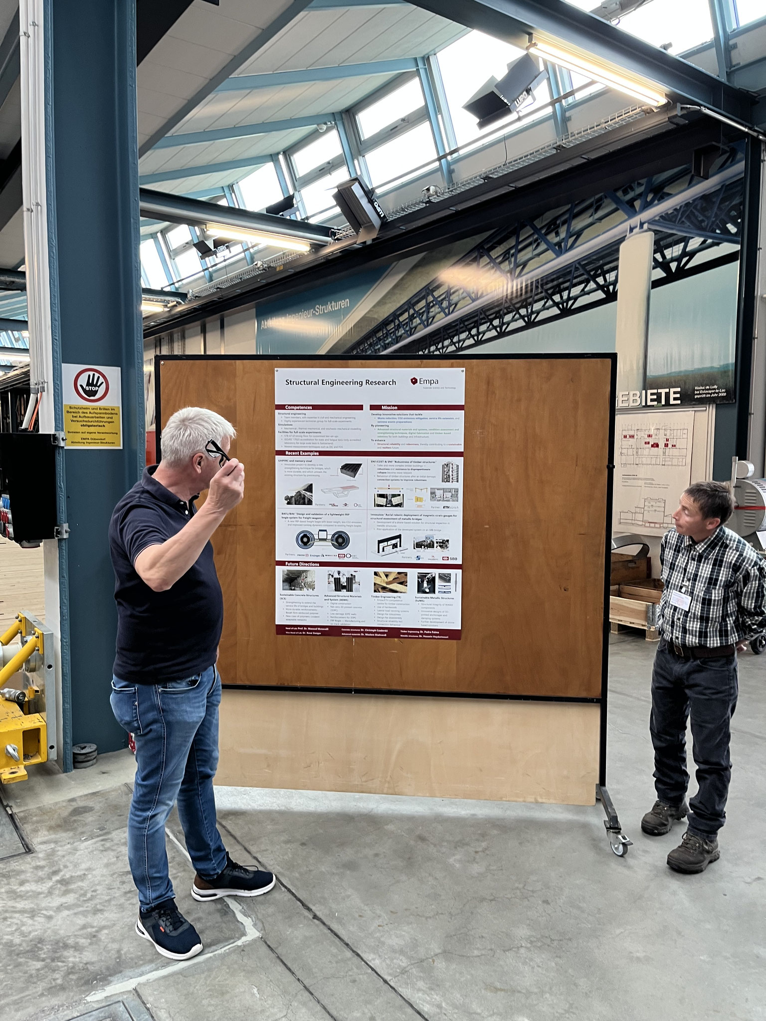 Dieses Jahr blieben wir für unseren Geschäftsausflug im Kanton Zürich. Mit dem ÖV ging es zuerst von Niederhasli nach Dübendorf zur Empa. Dort empfing uns der stellvertretende Abteilungsleiter René Steiger. Die Abteilung structural engineering ermittelt als akkredierte Prüfstelle die statische Belastbarkeit von Bauteilen und Bauwerken im Labor oder im Feld. Zudem wird das dynamische Verhalten von Bauwerken untersucht und es wird auf dem Gebiet der intelligenten Strukturen geforscht. Auch Kabel- und Seilsysteme für Brücken sowie Gutachten bei Schadenfällen im Bauingenieurwesen gehören zur Aufgabe. Nach dieser sehr wertvollen und interessanten Besichtigung durften wir im Empa-Bistro zur Stärkung einen Apéro zu uns nehmen, bevor es dann weiter Richtung Zoo Zürich ging. Dort erwartete uns bereits Frau Salome Stauffer. Aufgeteilt in zwei Gruppen durften wir bei Sonnenschein die Baustelle für die neue Pantanal Voliere besichtigen. Diese wird dem gleichnamigem Feuchtgebiet in Südamerika nachempfunden, welches in regelmässigen Abständen überschwemmt wird. Für das hierfür benötigte Wasser wird ein 800 Kubikmeter fassendes Retensionsbecken erstellt. Die Stahlkonstruktion mit bis zu 124 Meter langen Stahlbögen wird von einem Netz umfasst. Die Voliere bietet einen bis zu 35 Meter hohen Luftraum, in dem sich die Vögel in Schwärmen bewegen können. Nach dieser beindruckenden Führung ging es mit Bus und Tram ins Restaurant "zum alten Löwen", wo wir bei gemütlichem Beisammensein eine wunderbare "Tavolata" zu uns nehmen durften, bevor es dann wieder nach Hause ging.
